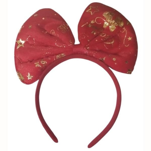 Vincha orejas de ratona de tela, estampado navideño. x1 unidad